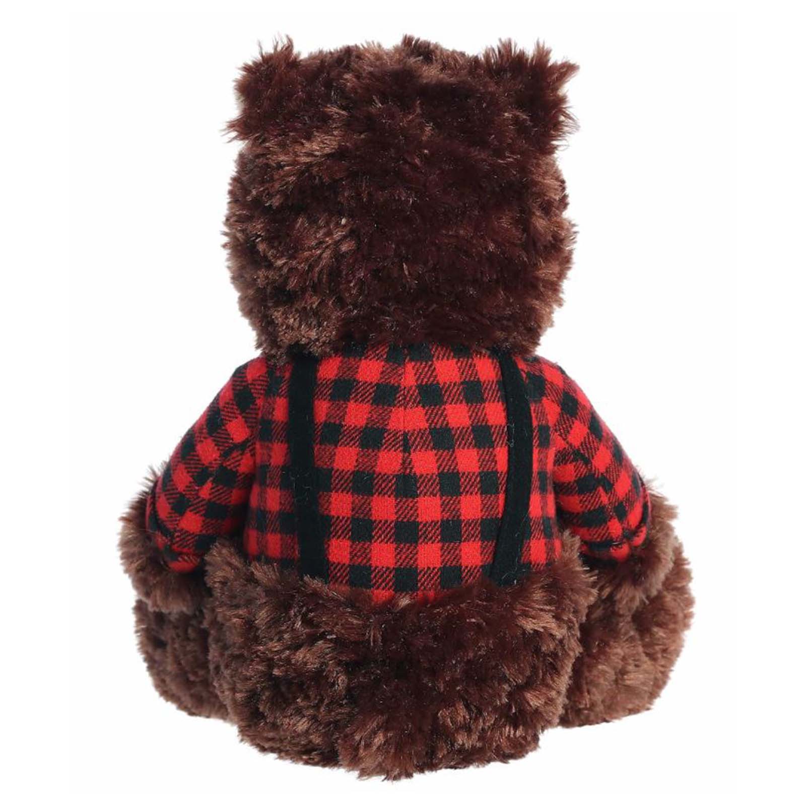 Features ultra-soft, warm brown fur and a charming red plaid scarf, perfect for wintertime cuddles