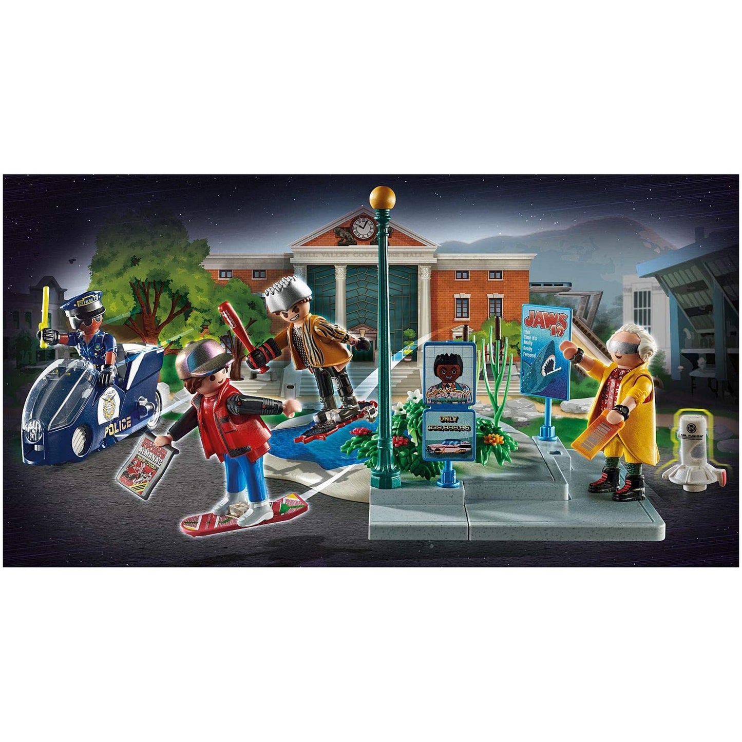 This is the Back To The Future Part II Hoverboard Chase 70634 made by the good people over at Playmobil. Playmobil has produced awesome building sets for many years.