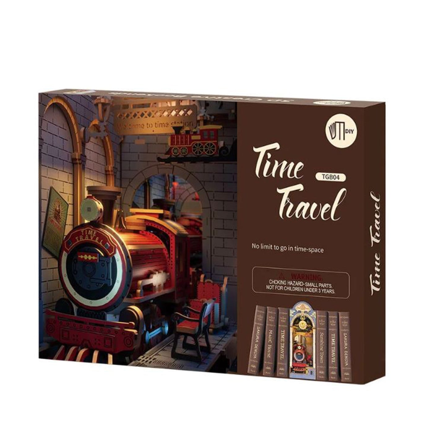 Robotime-Rolife Time travel Book Nook TGB04 3D wooden DIY miniature dollhouse kit is a train station that can take you to a different time and space. We have provided you with all the pieces and tools for you to create this cool miniature station scene. Have fun assembling all the parts together, and you'll get a unique book nook shelf insert and home décor! Hurry up, the train is about to leave!!